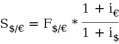 [25] Die sogenannte gedeckte Zinsparität fasst im Wesentlichen diese Idee zusammen. Im Gleichgewicht ist der Kassakurs einer Währung gleich ihrem Terminkurs, multipliziert mit dem Verhältnis ihrer Zinssätze: . Das heißt, bei einem gegebenen Terminkurs wird eine Erhöhung der Zinssätze des Euro den Dollar abwerten (man wird mehr Dollar pro Euro liefern müssen), während eine Erhöhung des Zinssatzes des Dollars den Dollar aufwerten wird (man wird weniger Dollar pro Euro liefern müssen). All dies natürlich immer unter der Voraussetzung, dass die Bewegungen der Zinssätze keine Veränderungen der zugrunde liegenden Risiken der jeweiligen Finanzaktiva widerspiegeln.